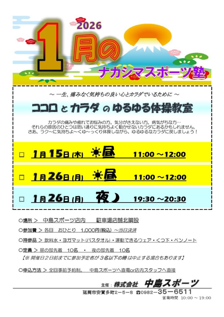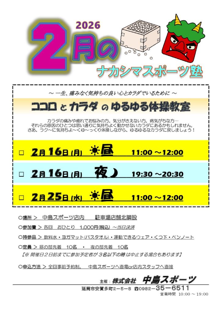 2026年 1月・2月 ナカスポ塾『ココロとカラダゆるゆる体操教室』のご案内