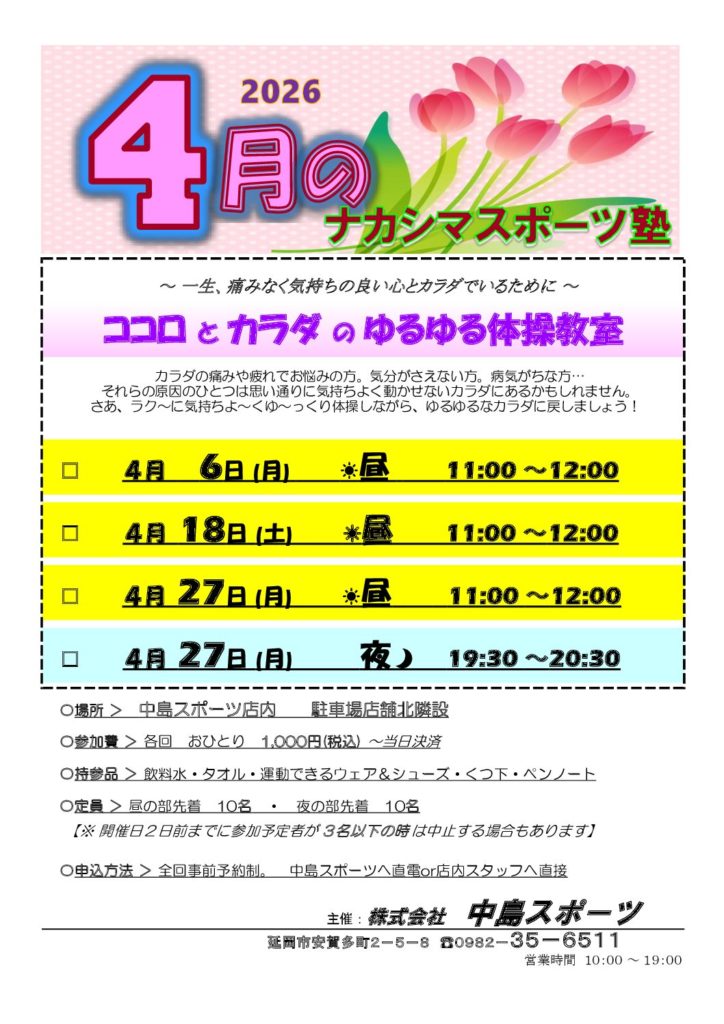 2026年 4月 ナカスポ塾『ココロとカラダゆるゆる体操教室』のご案内